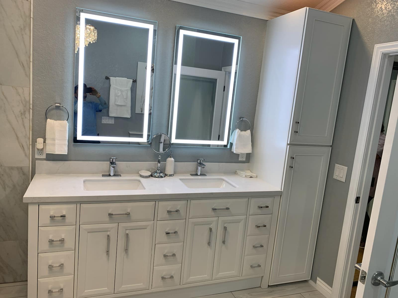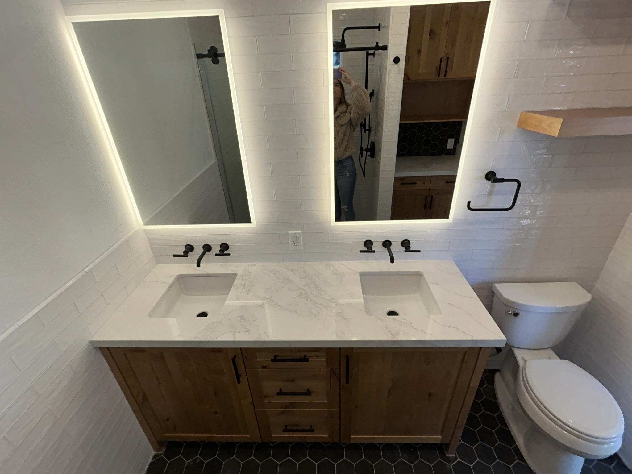 Full bathroom transformations featuring custom showers, vanities, tile work, plumbing updates, and luxury finishes.